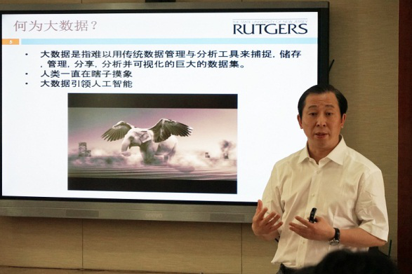 会上,熊辉教授应邀做了“商业环境中的大数据分析”主题报告,报告介绍了基于KDD的市场营销、房地产、移动智能等不同商业中数据挖掘的应用问题,探讨了在现实环境中,如何准确定位问题的重要性,并将现实问题转换成数学问题,以解决现实世界问题。